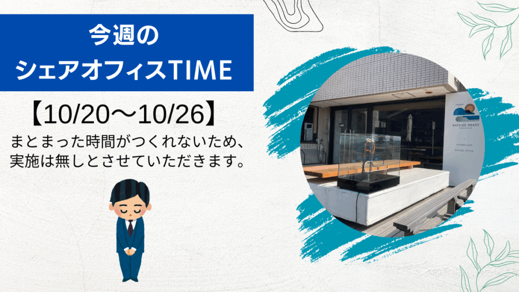 今週のシェアオフィスTIMEは、『実施なし』とさせていただきます。